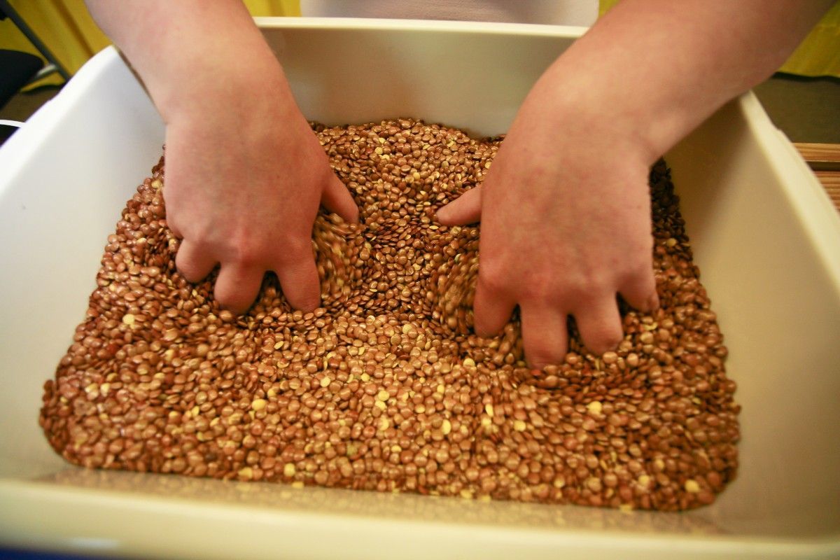 In unserer Ergotherapie werden hauptsächlich Materialien wie Peddigrohr, Seide, Holz, Farben, Makramee, Knetmasse, Metall, Papier mit unterschiedlicher Zusammensetzung, Wasser, Moor, Kies, Paraffin, Bohnen, Linsen, Styropor u. v. mehr verwendet.